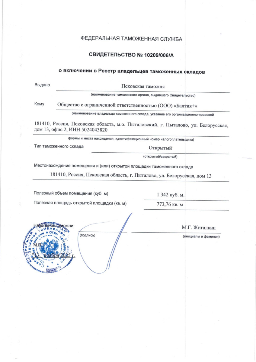 ТЛТ Лудонский, расположен вблизи границы Российской Федерации и Латвийской Республики, в зоне ответственности Псковской таможни (Свидетельство о включении в реестр владельцев складов временного хранения №10209/140512/10043/3 от 26.02.2025г). ТЛТ Лудонский осуществляет свою деятельность в лице ООО «Балтия+».